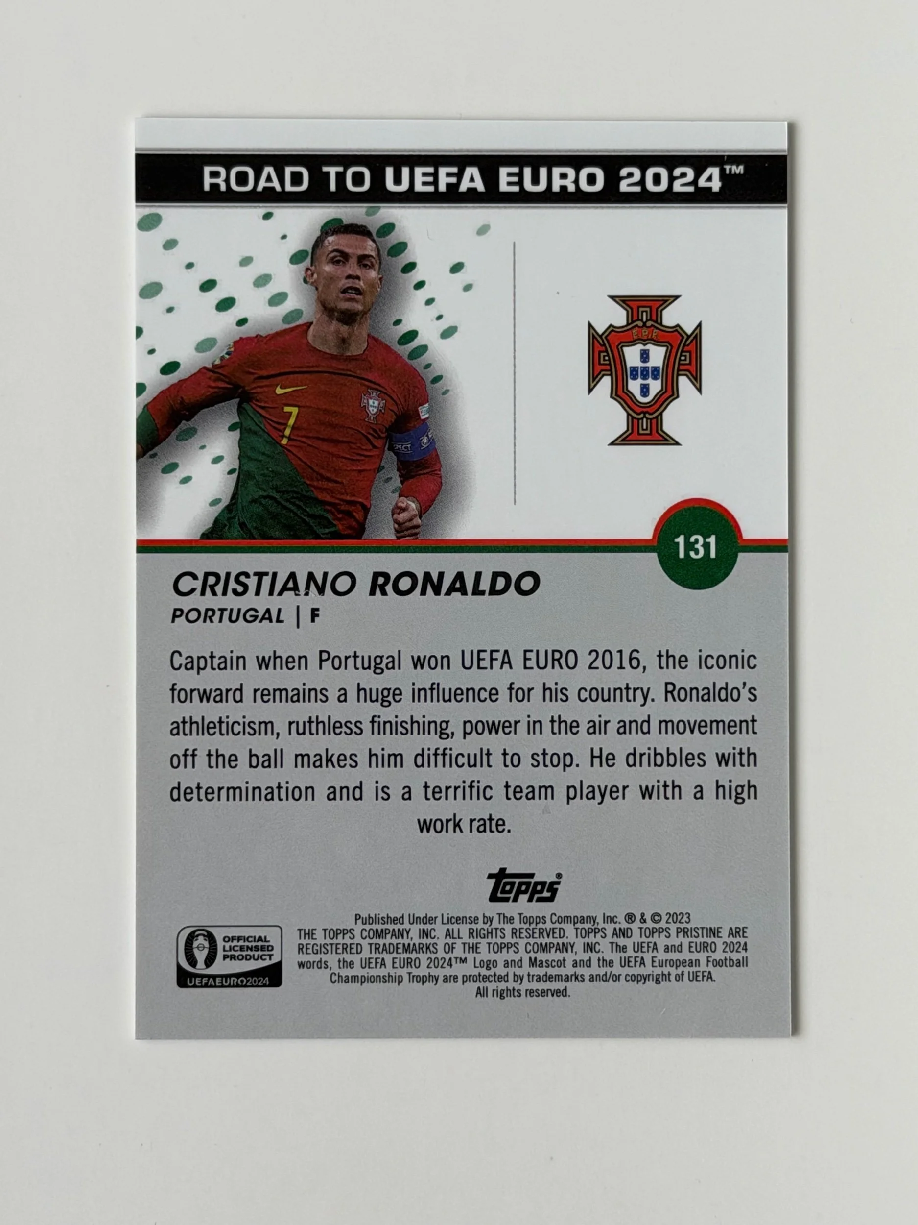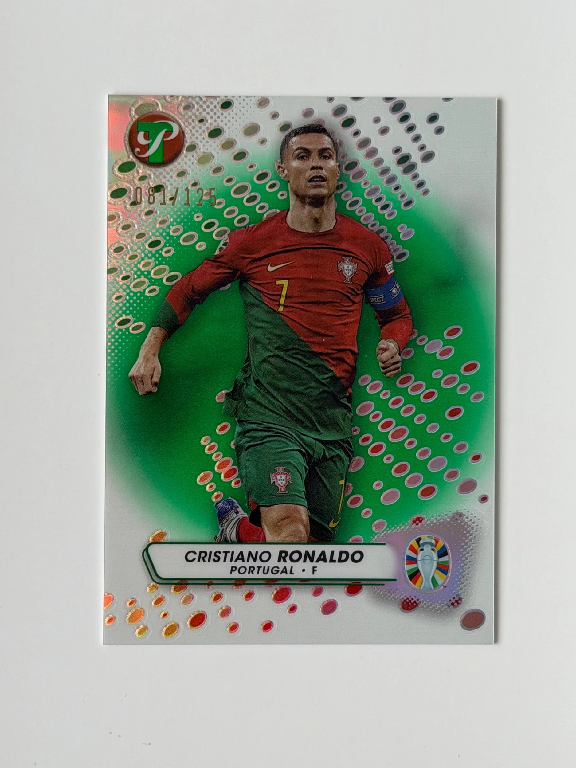 A serial numbered card of Cristiano Ronaldo (/125), finished on a clean Pristine design. Sharp look with strong detailing - a nice addition to any collection.