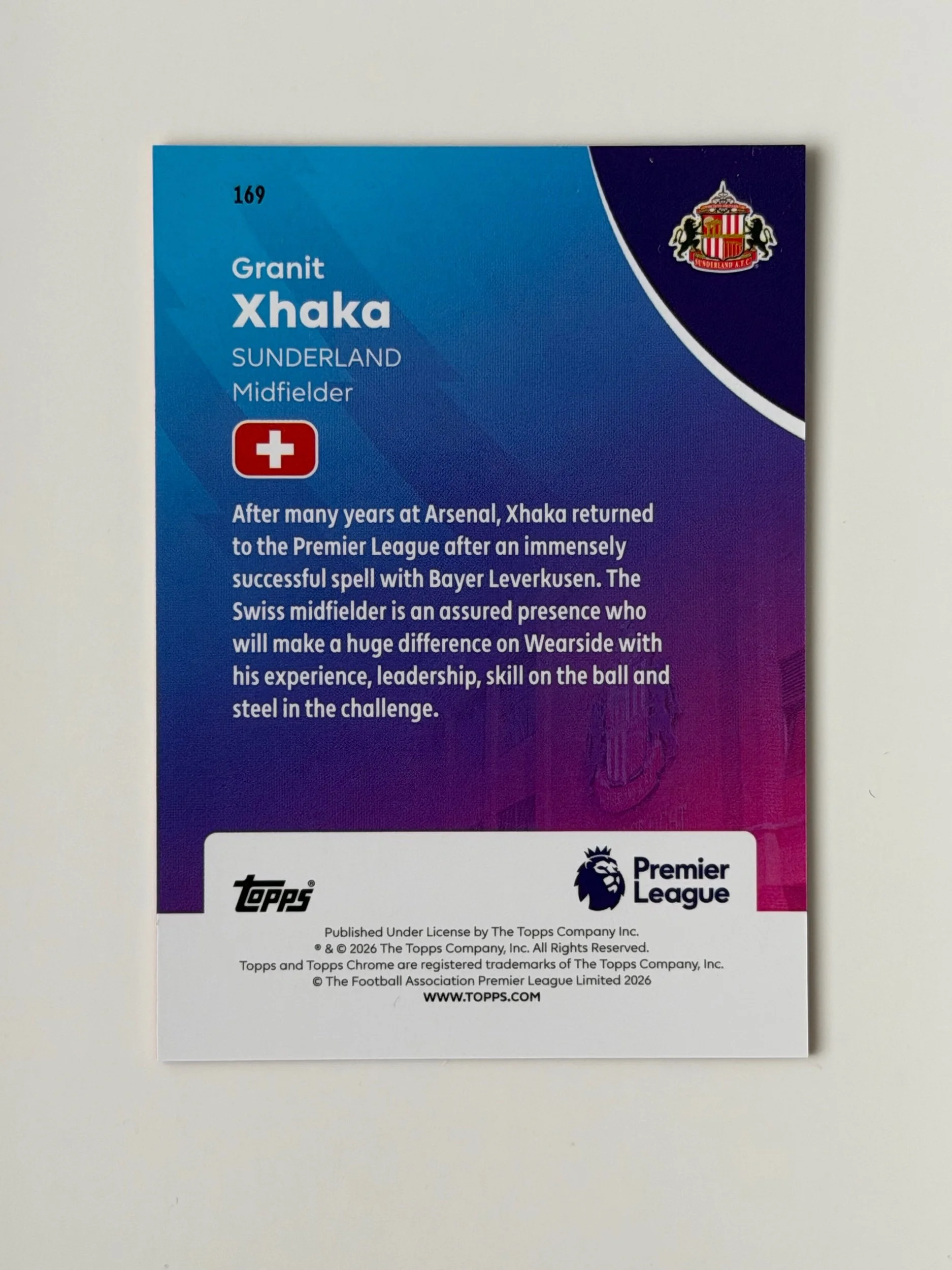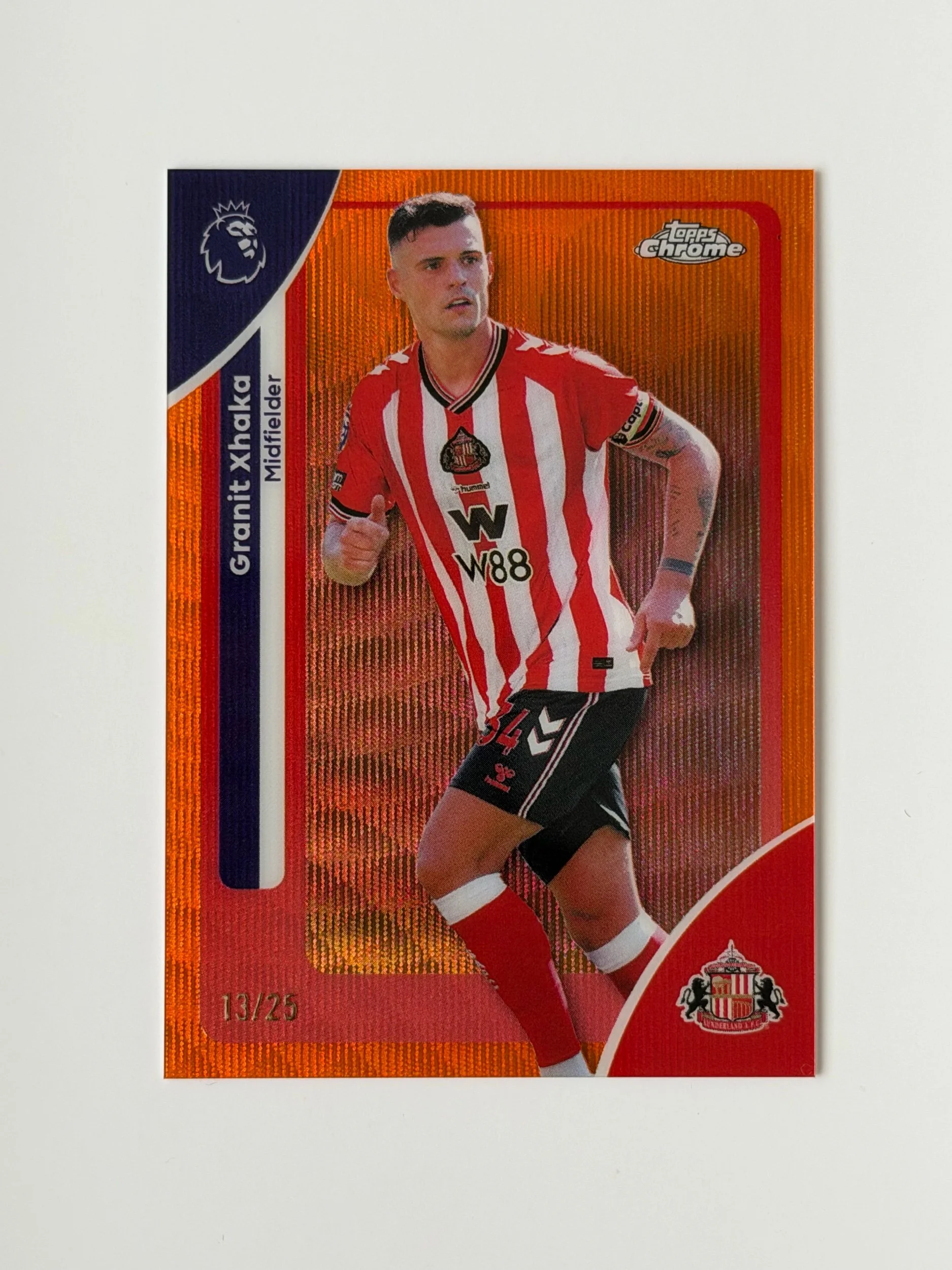 A low serial numbered card of Granit Xhaka (/25), finished on a clean Chrome design. Sharp look with strong detailing - a nice addition to any collection.