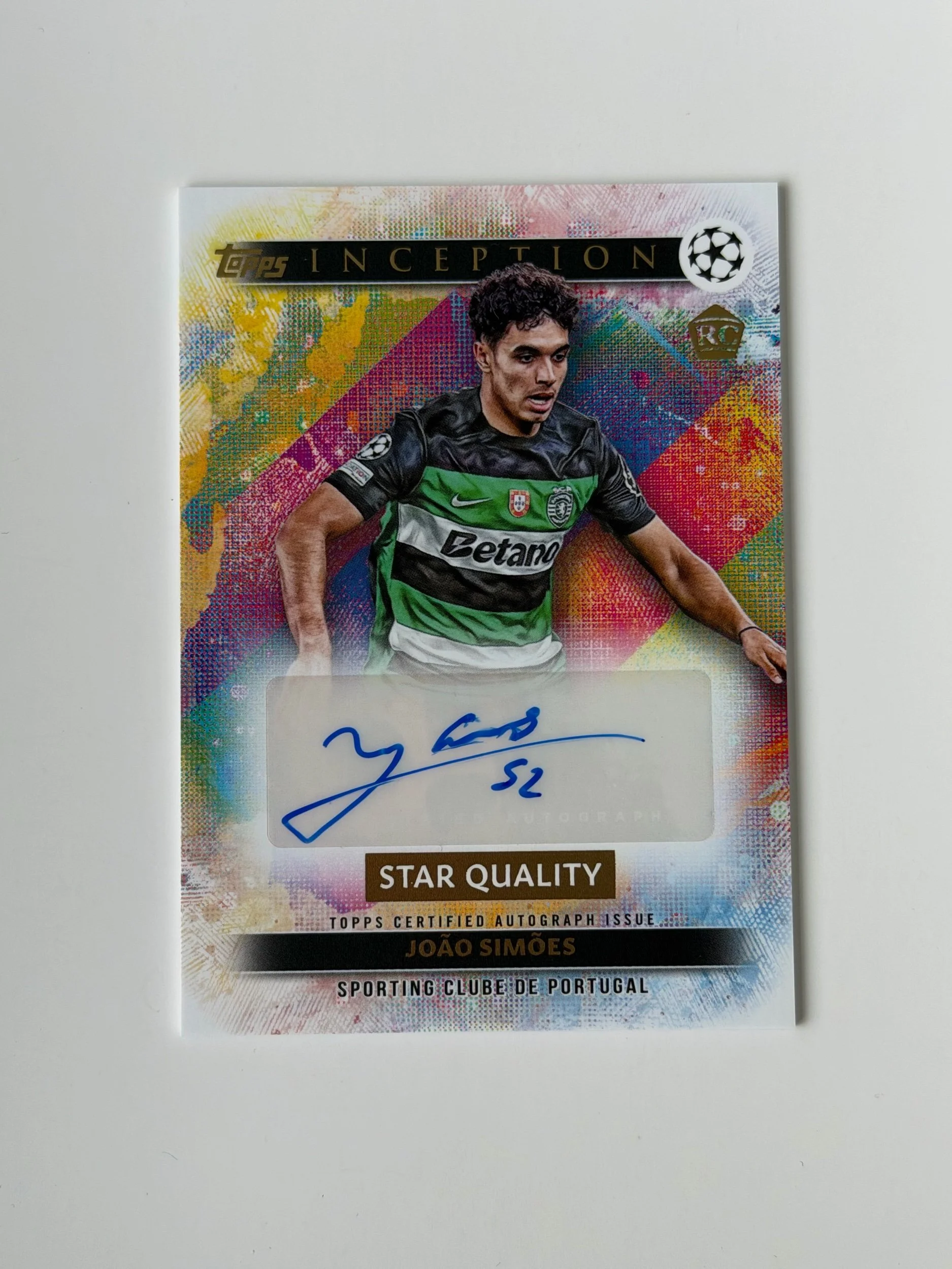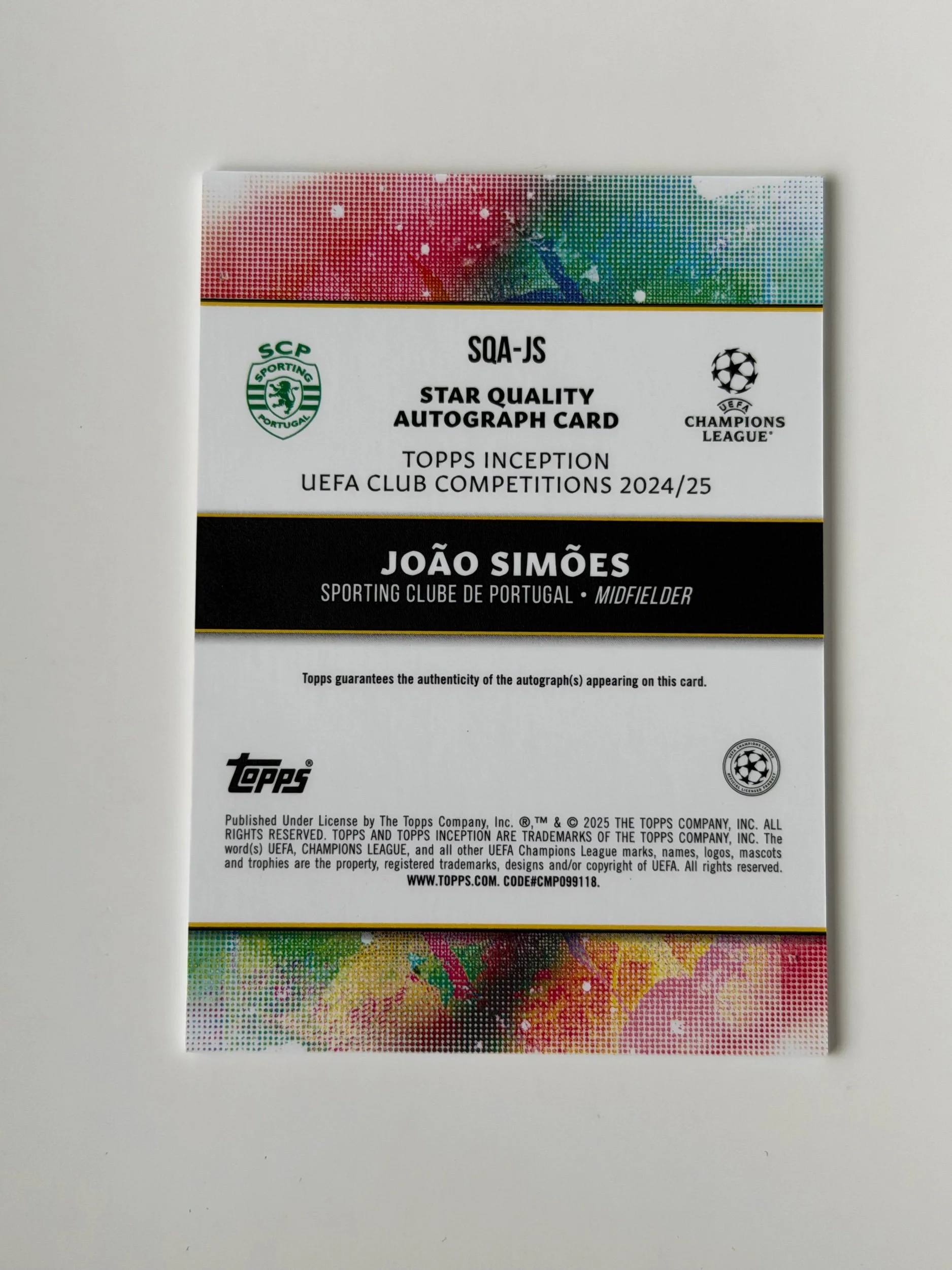 A clean autograph of João Simões, featuring a sharp signature on a bold Inception design. Crisp finish with strong detailing - a nice addition to any collection.