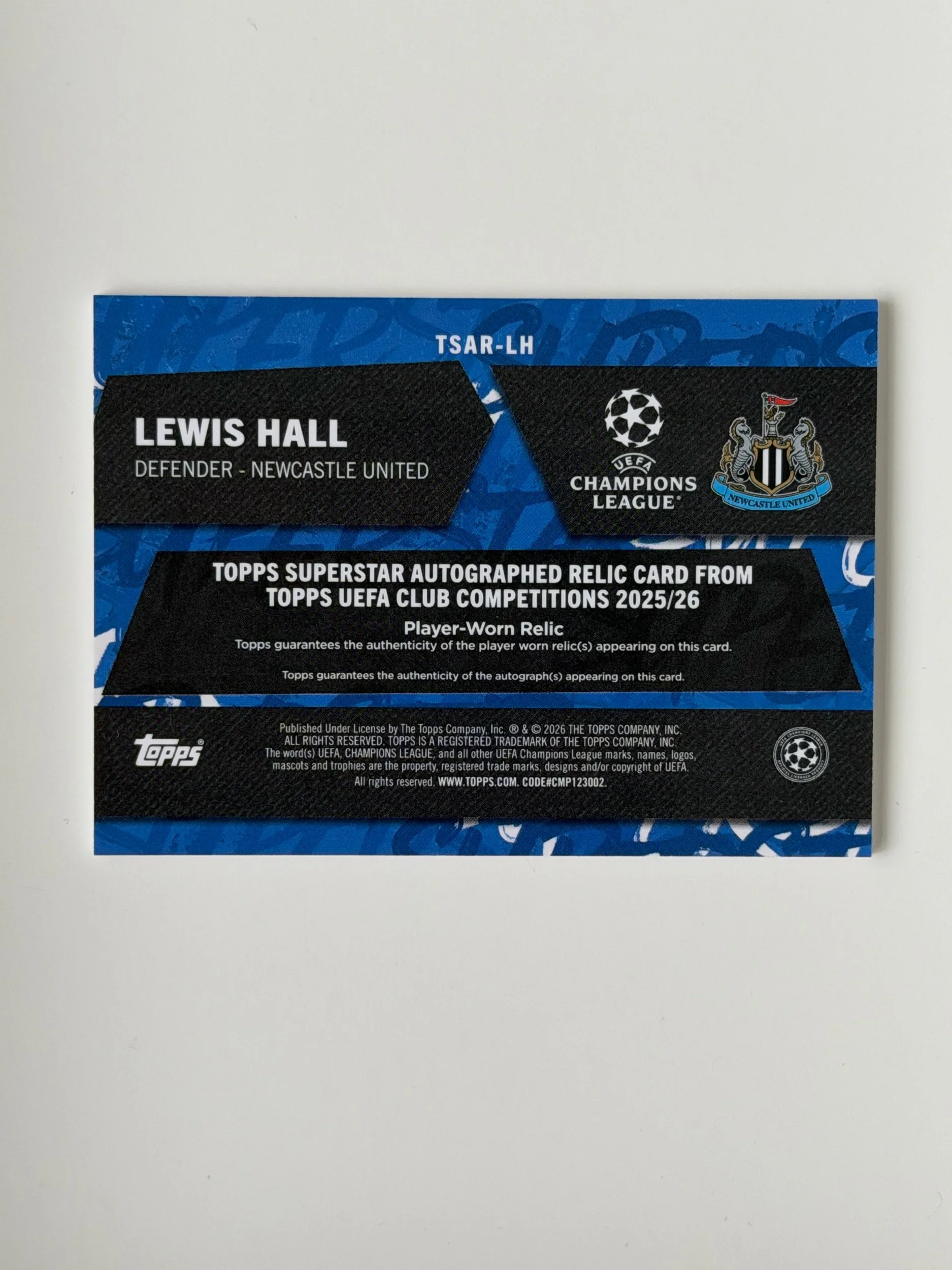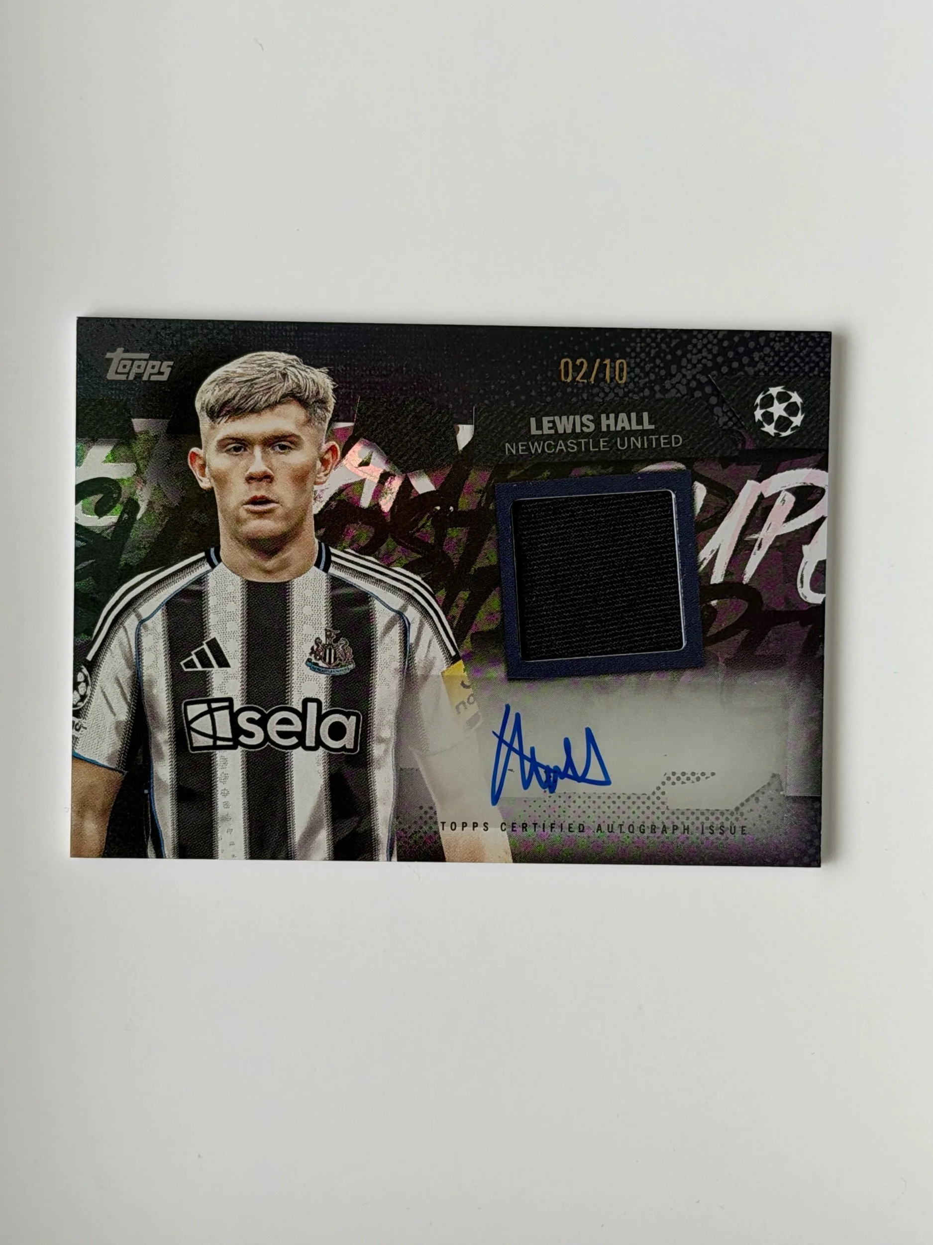 A low serial numbered player-worn relic autograph of Lewis Hall (/10), combining a clean signature with a fabric piece on a sharp Flagship design. Strong visual with layered detailing - a nice addition to any collection.