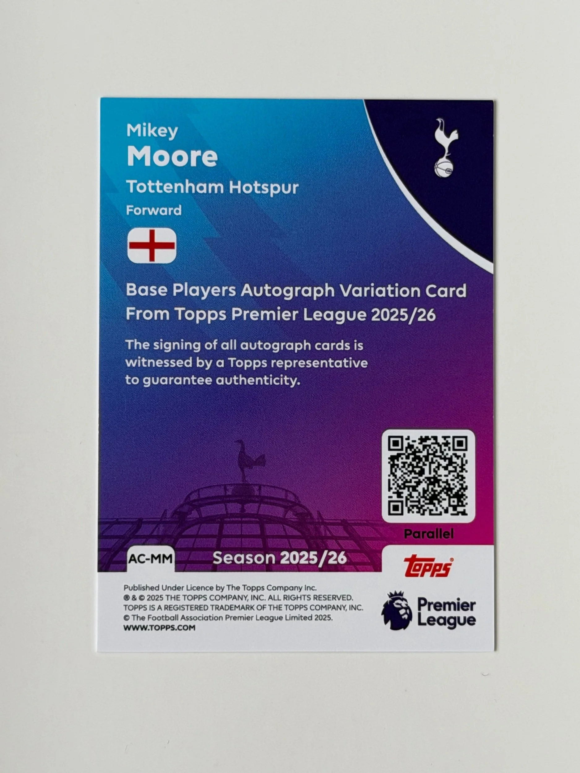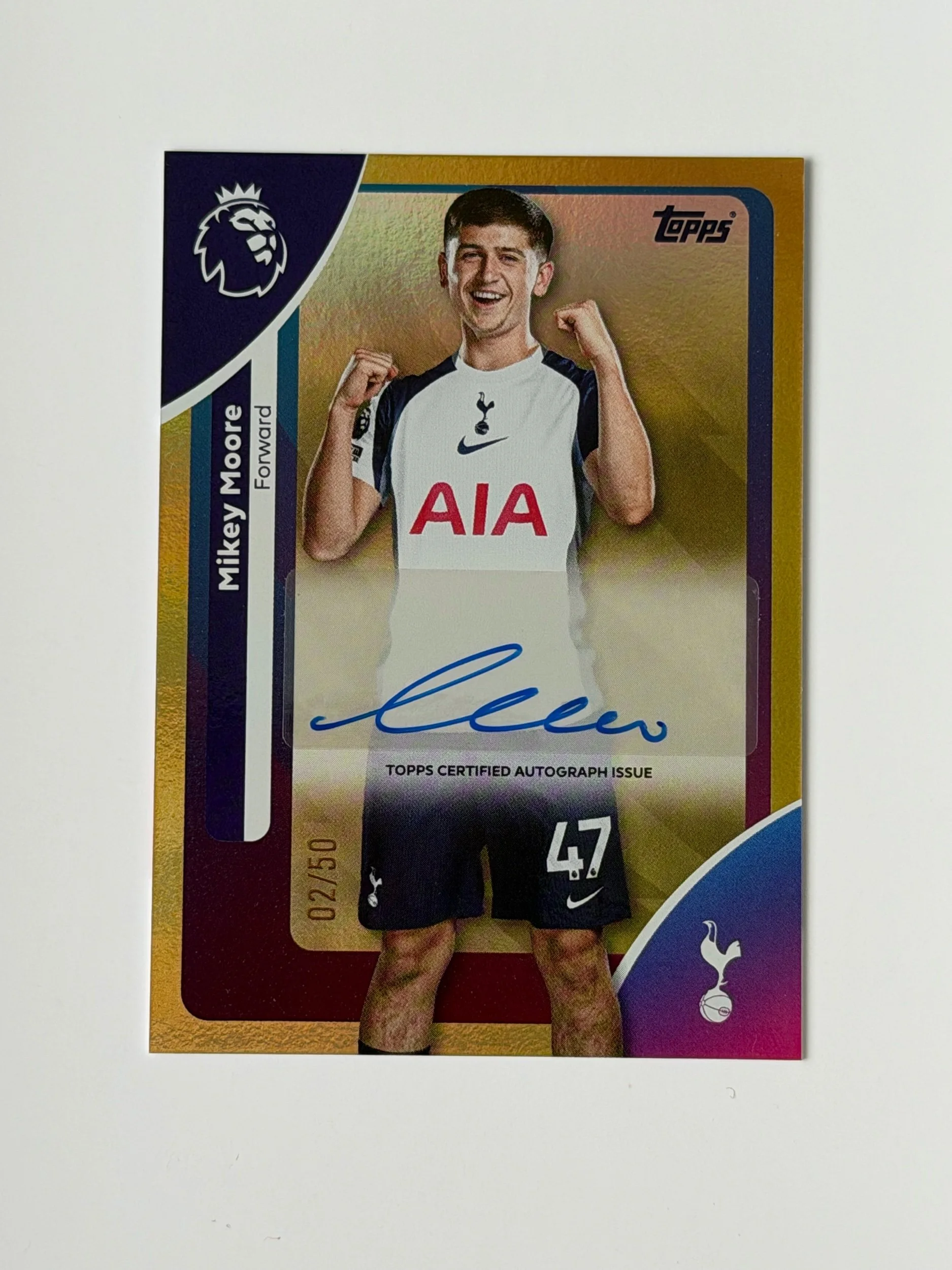 A serial numbered autograph of Mikey Moore (/50), featuring a clean signature on a sharp Topps design. Crisp finish with strong detailing - a nice addition to any collection.
