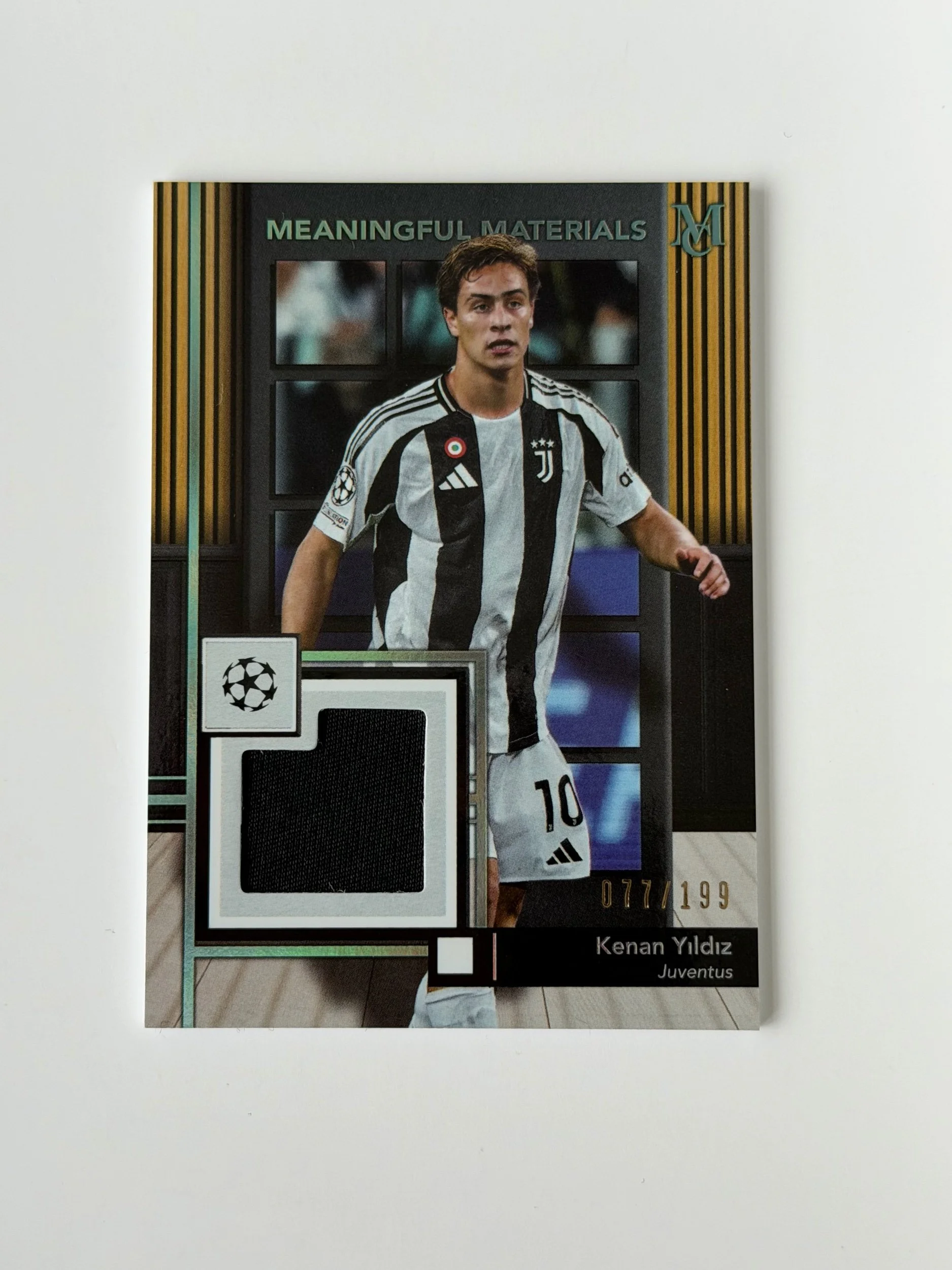 A serial numbered player-worn relic card of Kenan Yıldız (/199), featuring a fabric piece set within a detailed Museum design. Clean finish with strong visual detailing - a nice addition to any collection.