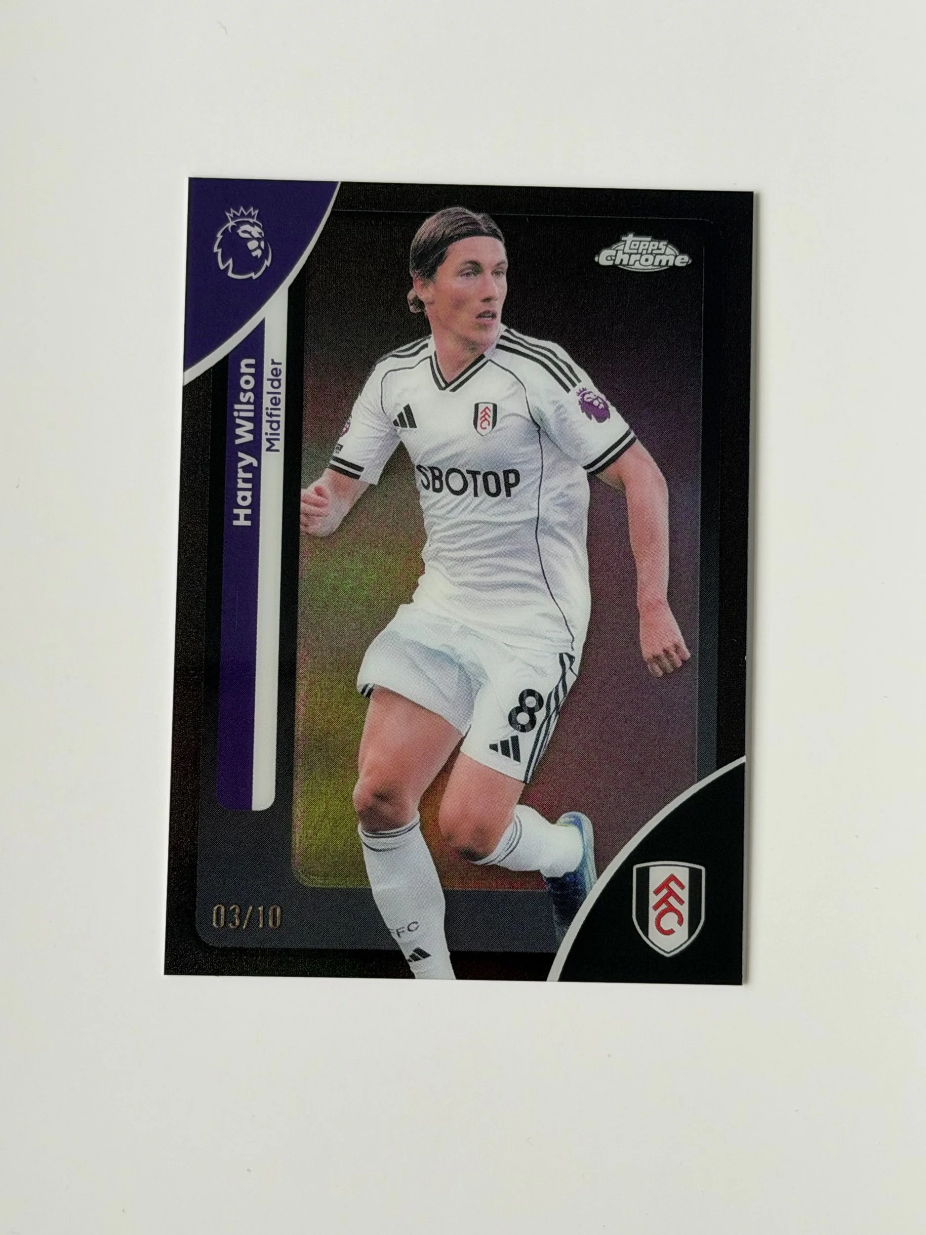 A low serial numbered card of Harry Wilson (/10), finished on a clean Chrome design. Sharp look with strong detailing - a nice addition to any collection.