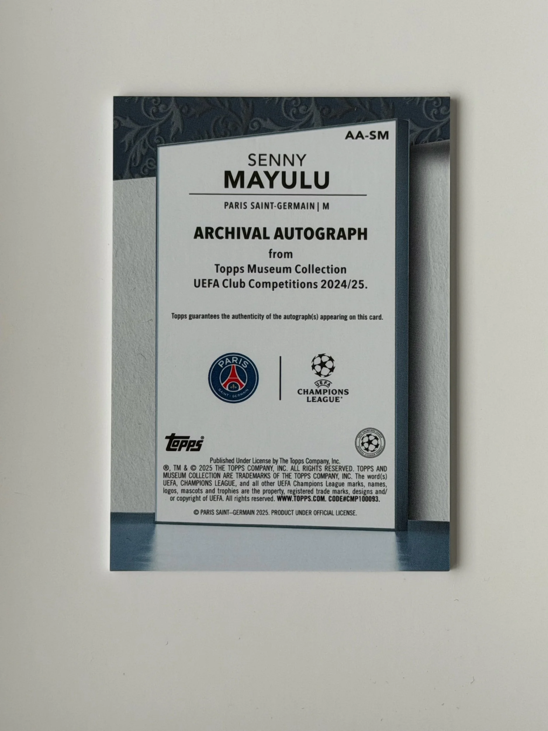 A serial numbered autograph of Senny Mayulu (/75), featuring a clean signature on a well-defined Museum design. Crisp finish with strong detailing - a nice addition to any collection.